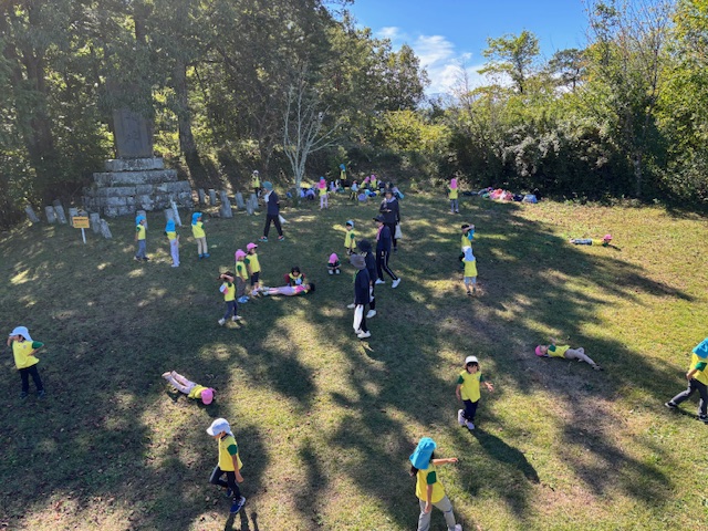 秋晴れの青空の下、秋の遠足へ行ってきました。