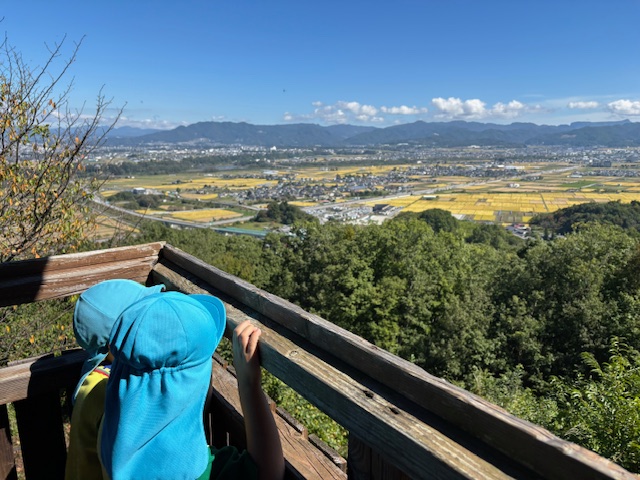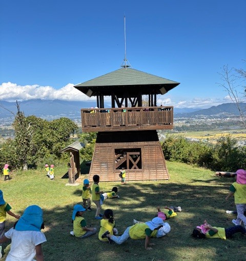 年中、年長組は、虚空蔵山へ登り、景色の良さに感動し、秋の実探しと土手滑りに夢中。
